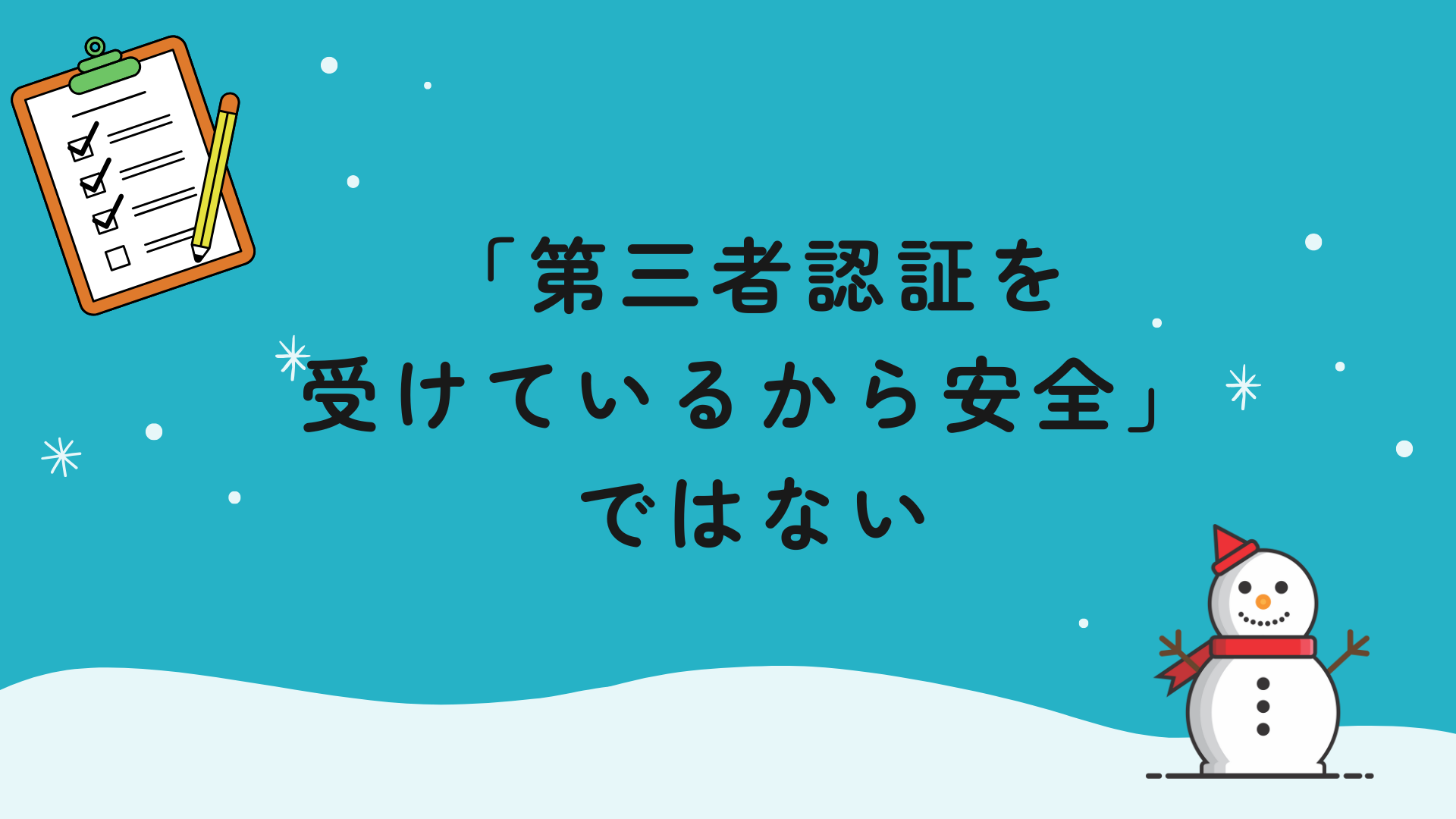 「行政の立ち入り検査を受けているから安全」、「第三者認証を取っているから安心」。こうした考え方は、今回の事例を見る限り、必ずしも正しいとは言い切れません。第三者監査の限界については、下記の記事でも詳しく解説していますので、参考にしてください。