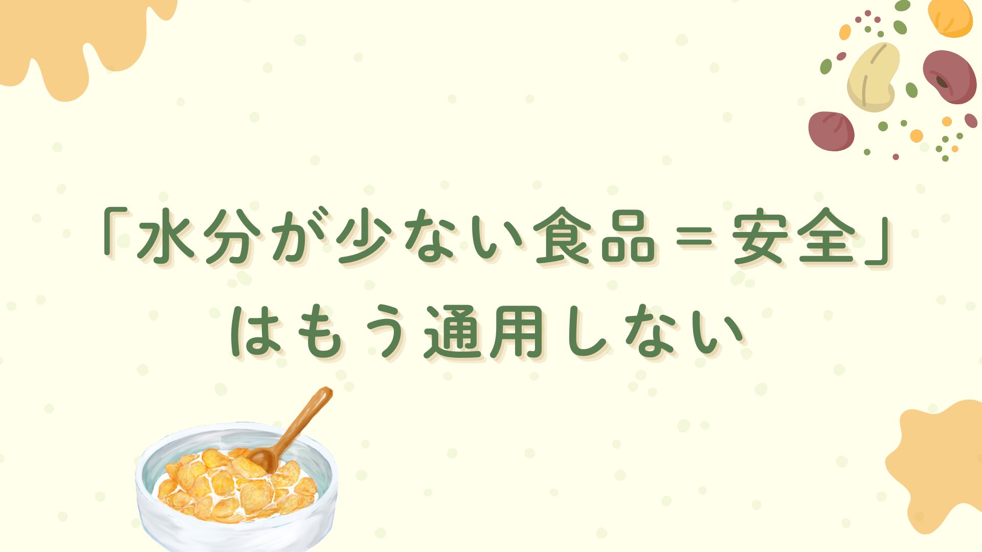 - 「低水分だから安全」「菌は増えないから問題ない」と過信しないこと